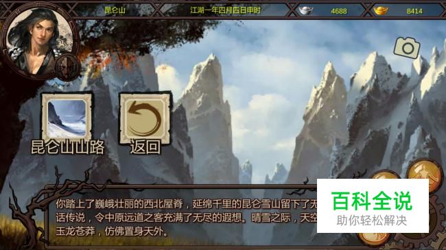 剧情起源于昆仑山,所以我们先要在大地图上找到昆仑山,游戏里的地理位置跟我们现在的地理位置还是大致相符的,所以昆仑山在地图的西偏北的位置。