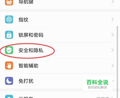 打开手机设置,点击“安全和隐私”。