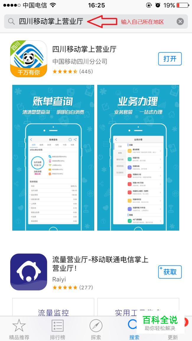 这里以四川为例,在搜索栏里输入“四川移动掌上营业厅”,前面要输入自己手机卡所在的地区,点击下载。