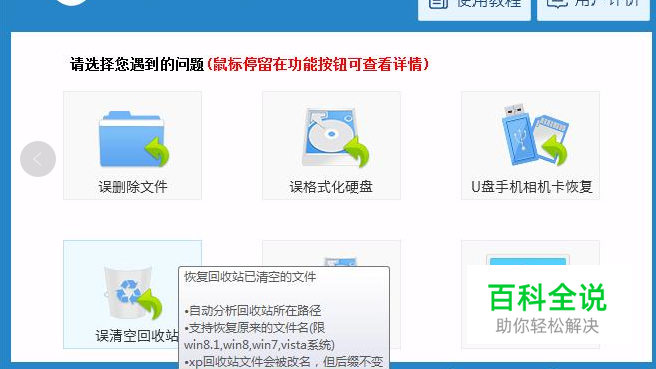 安装完互盾数据恢复软件后,我们就把它打开。我们看到很多功能我们只要选择误清空回收站模式就好