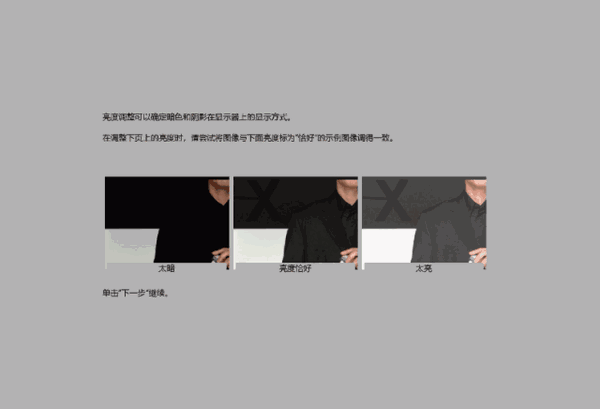 在这里,您可以看到如何调整伽玛*的方法页面,点击下一步,通过移动滑块,调整合适的伽玛值。