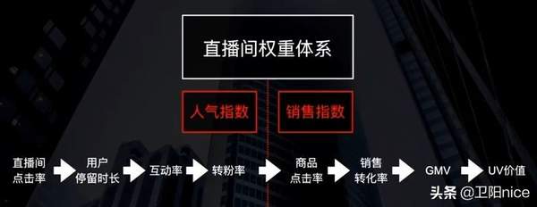 依旧是以抖音直播间为例,下图是一套完整的抖音直播间流量体系,用户从点击进直播间之后的完整链路,包括人气指数:点击率、停留时长、互动率、转粉率;销售指数:商品点击率、销售转化率、GMV、UV价值。