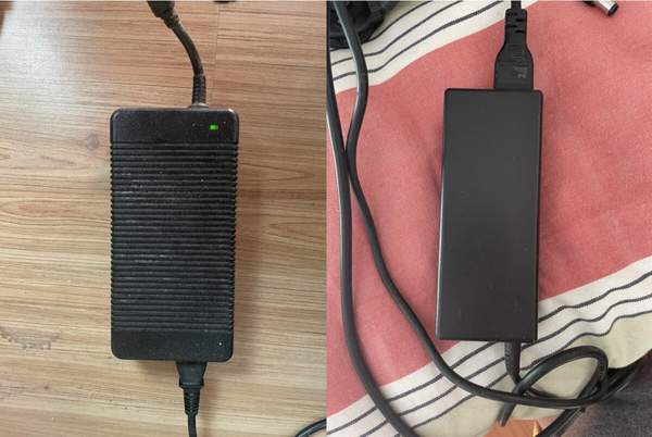 (左为现正在用的笔记本充电器,右为原来的笔记本充电器)