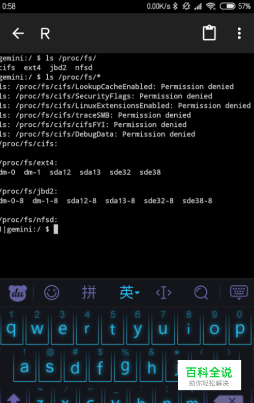 在终端输入命令:【ls 空格/proc/fs/*】星号不要少了,然后看到这里sda开头就是ufs闪存,如果是mmac,那么就是emmc闪存了的,非常的简单就可以判断出来的。