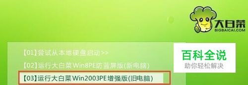 重启电脑,通过快捷键引导u盘启动打开大白菜主菜单,进入win2003pe。
