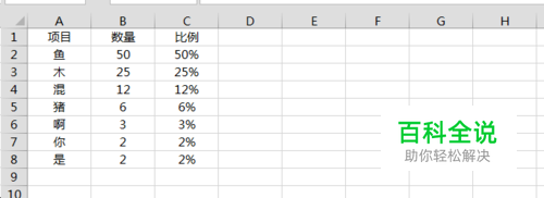 首先需要创建一个辅助列来显示累计比例数据,使用公式如下所示:
