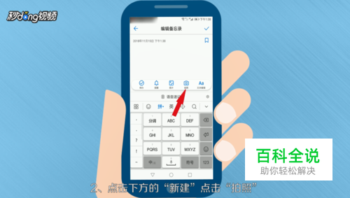 打开“备忘录”,点击“新建”,点击“拍照”,点击“小圆点”进行拍照。