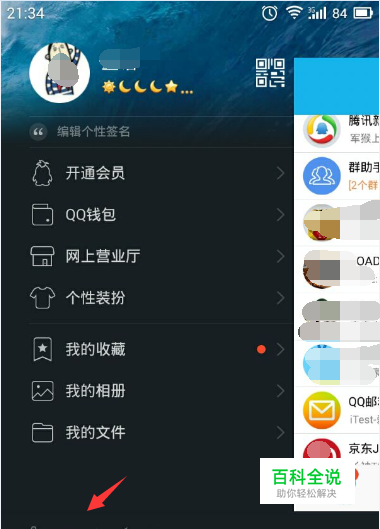 进行对qq的界面进行向右滑动,向右滑动之后,点击“设置”的选项。
