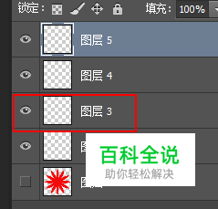 如图所示。只显示一个图层怎么办? 将光标移动要显示的图层的,按住ALT点击眼睛。如果这个图层原本是显示的话,其他图层会全部关闭显示。