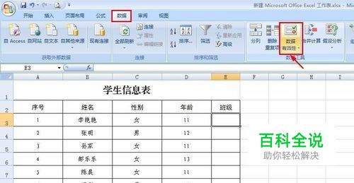 第二步:选中要设置错误提示信息的单元格,选择菜单栏“数据”中的“数据有效性”。