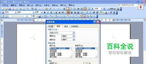 设置贺卡纸张大小 例如:设置为15*15的“纵向”页面 打开WORD→文件→页面设置→纸型→自定义(15*15厘米)→纵向→确定