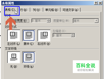 点击表格属性中的“表格"选项卡。