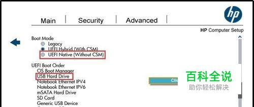 惠普商用本UEFI BIOS,如何更改UEFI启动顺序