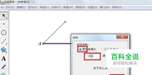 然后用侧边栏的“移动箭头工具”选择B点和线段AB,单击“变换”——旋转。