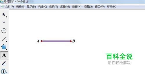 打开几何画板,在侧边栏打开“线段直尺工具”,按住“Shift”键在画布上面做一条线段,并用“文字工具”标记为线段AB。