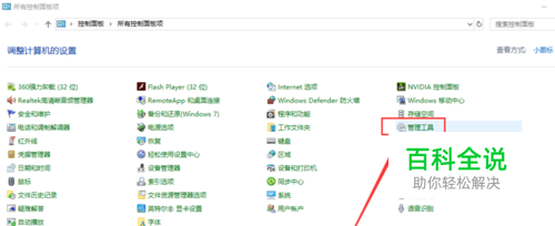 打开WIN中的控制面板后,在所有显示模块中选择【管理工具】,如下图所示。