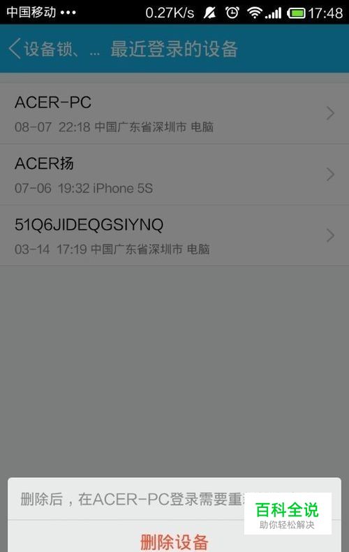 进入“最近登陆的设备...”,如图所示。如果想要删除相关记录,直接点击即可进行删除。